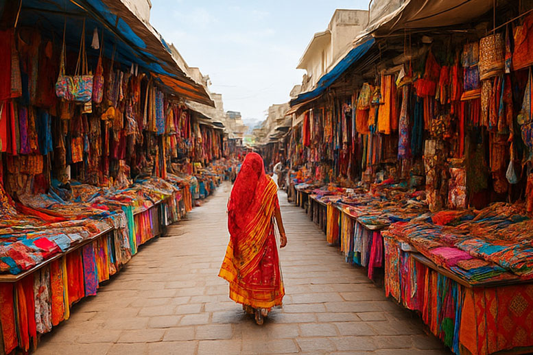 A lively bazaar filled with colorful textiles, handmade jewelry, leather goods, and local souvenirs. Perfect for an evening stroll and a glimpse of authentic Rajasthani craftsmanship.